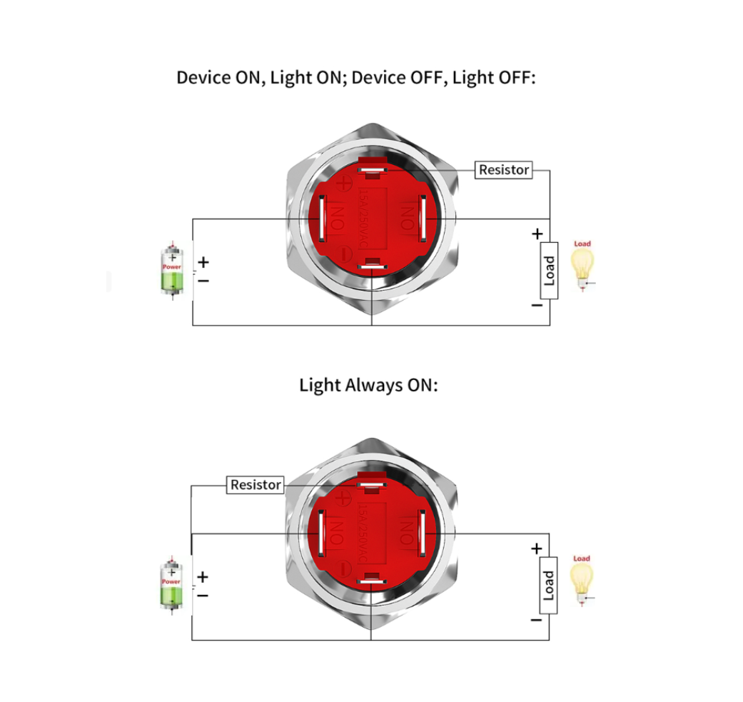 - ・モーメンタリー式はボタンを押している間ON状態を保持