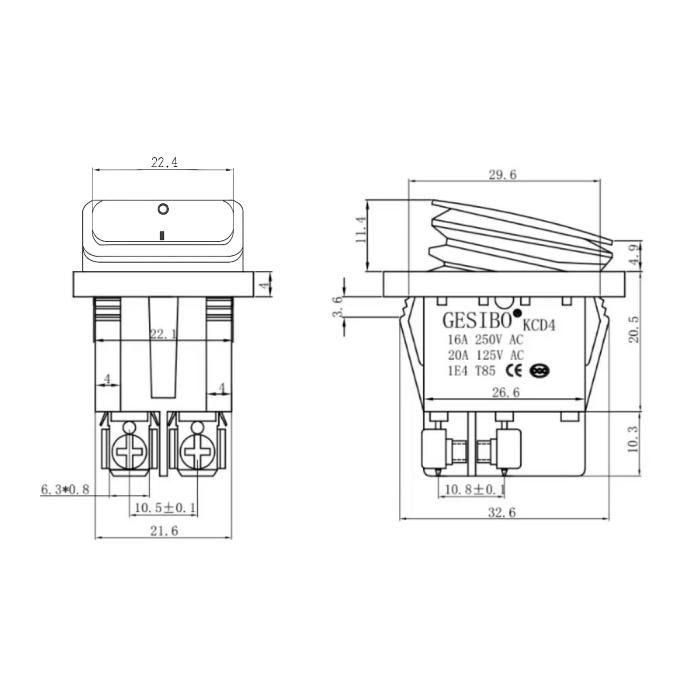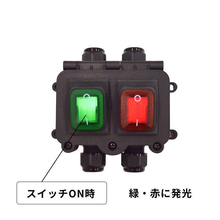 - ・ON-OFF/2極4ターミナル/アコーディオン式防水ロッカースイッチ(赤&緑)付き